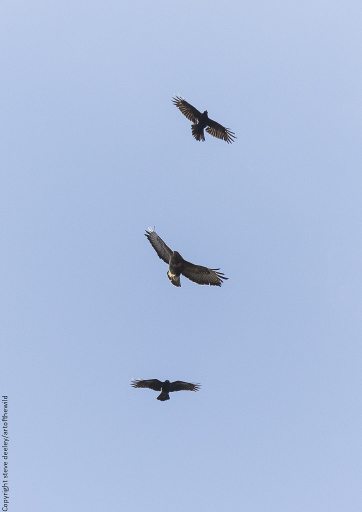 • buzzards mobbed by crows