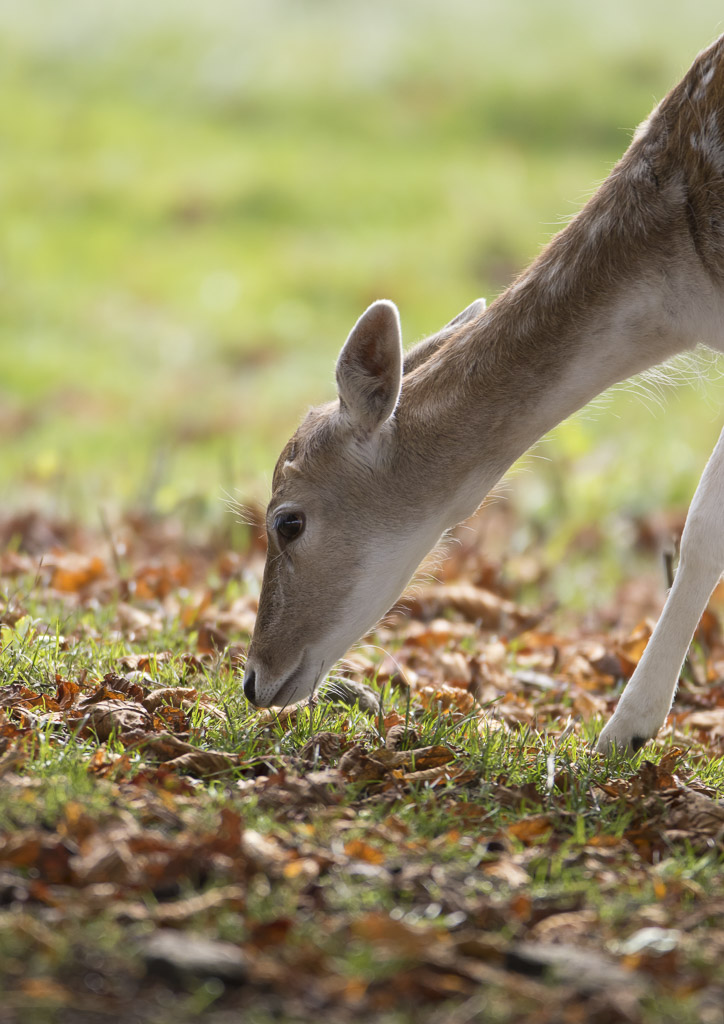 Fallow deer doe grazing - shot in deer park