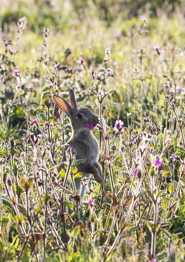 Rabbit feeding on campion